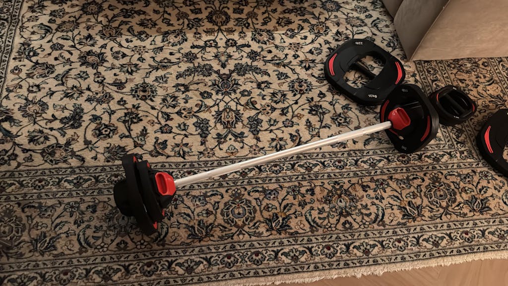 Die Hantelscheiben lassen sich ohne Klemmen einfach auf die Stange klicken, was die Hantel besonders benutzerfreundlich macht. Die Smartbar-Scheiben eignen sich ideal als Handgewichte für ein Ganzkörpertraining und sind perfekt für Brust- und Schultertraining. Ergonomische Griffe unterstützen die richtige Hebetechnik und sorgen für einen komfortablen Halt. Das Set beinhaltet eine Langhantel, 2 x 5-kg-Scheiben, 2 x 2,5-kg-Scheiben und 2 x 1-kg-Scheiben.